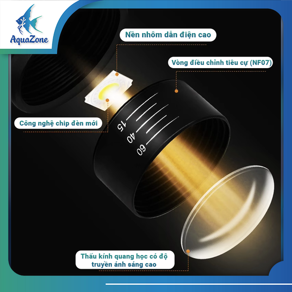 Đèn rọi bể cá Riverside NF06 NF07 3 màu trắng lạnh, trắng trung tính, trắng ấm tùy chỉnh tiêu cự, góc độ đèn