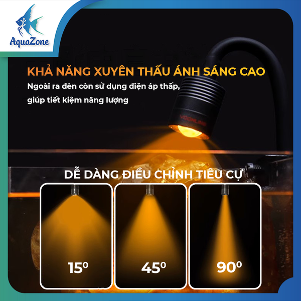 Đèn rọi Mini VOONLINE điều chỉnh tiêu cự sẵn công tắc điều khiển với 9 cấp độ (bật/tắt, tăng/giảm sáng). Trang bị mặt kính có độ trong suốt cao, điều chỉnh tiêu cự đa dạng. Hiệu ứng ánh đèn sân khấu và tuỳ chỉnh tiêu cự từ 15 ~ 90 độ. Ống mềm đa năng xoay 360 độ giúp tìm ra góc chiếu sáng tốt nhất.