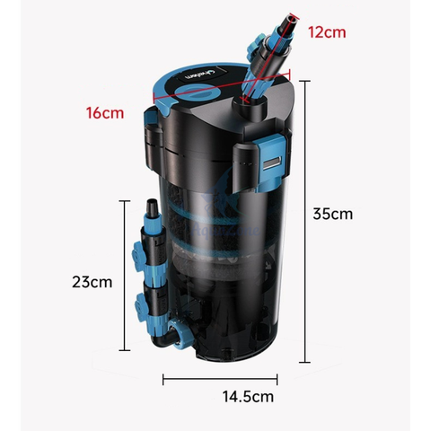 - Thiết kế máy bơm chìm, ngăn chứa vật liệu lọc lớn , trang bị sẵn các vật liệu lọc trong thùng ( Bông lọc, sứ lọc,,....) và có thể thay thế vật liệu lọc tùy thích