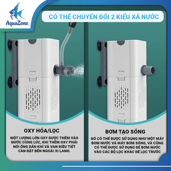 Một thiết bị nhưng bao gồm ba chức năng Lọc, Bơm, thổi luồng oxy