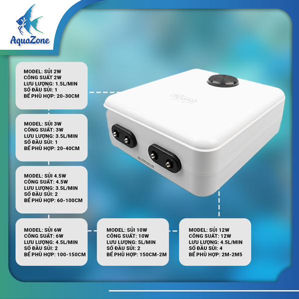 Máy sủi oxy bể cá Yee 1 vòi, 2 vòi, 4 vòi, công suất lớn, lưu lượng cao, hoạt động êm ái