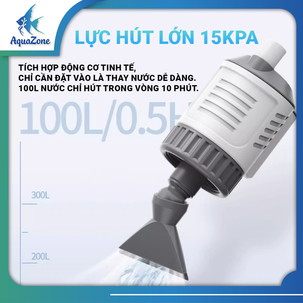 Tăng cường lực hút ( Bể cá lớn 1.5 m chỉ mất khoảng 35 phút để vệ sinh)